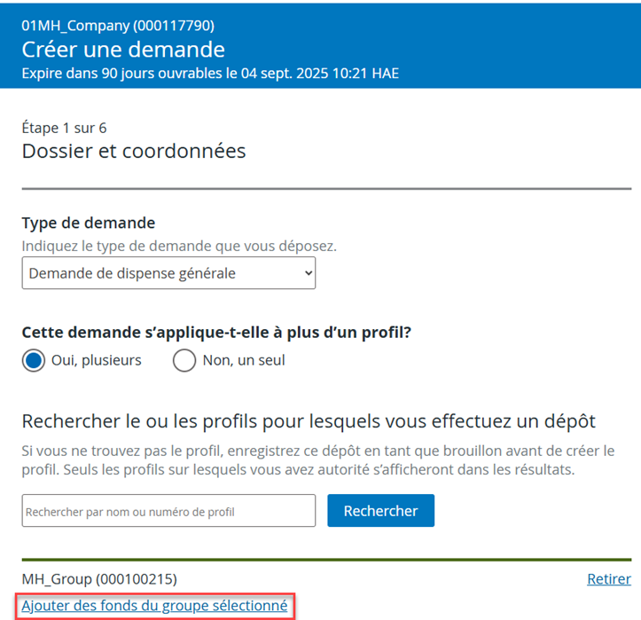 - Dans un souci de clarté, le lien « Ajouter des renseignements » a été remplacé par « Ajouter des fonds du groupe sélectionné » lorsque vous associez un groupe de fonds d’investissement au dépôt.